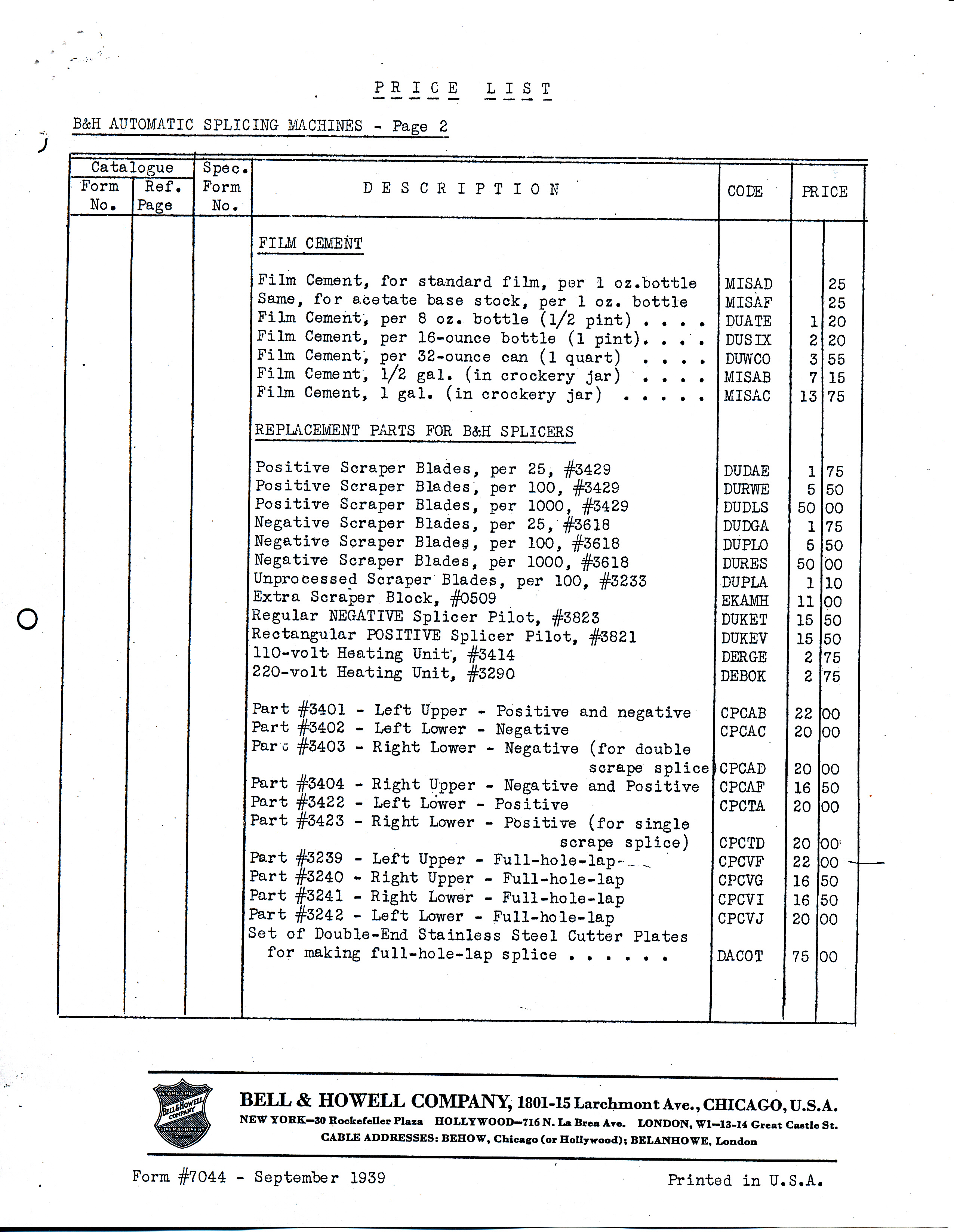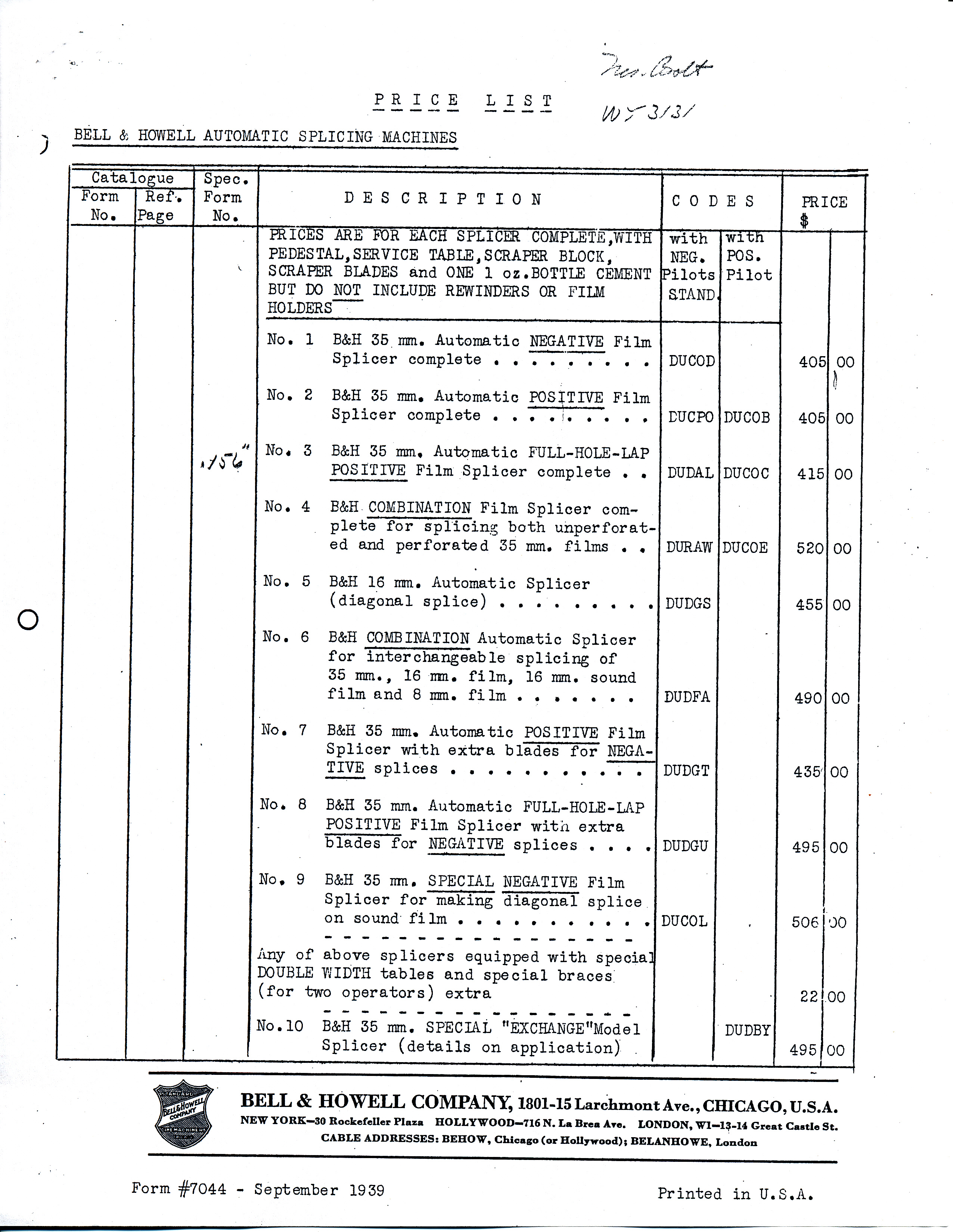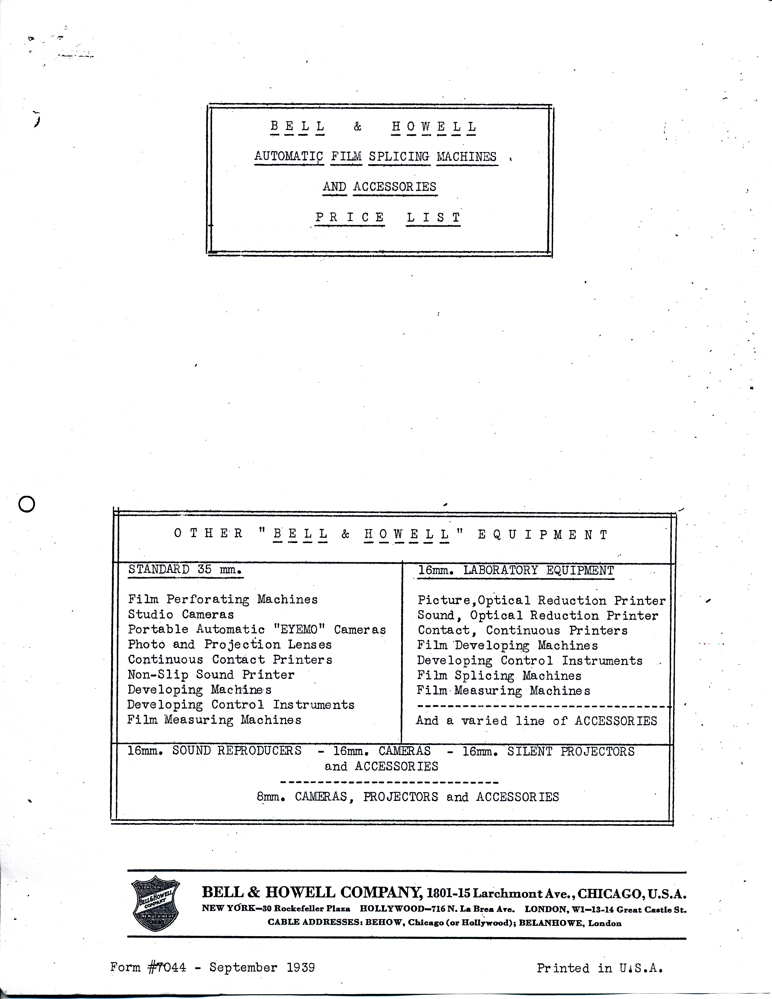 This is a booklet produced in 1929 by the Bell & Howell Company for their Splicers. Click thumbnails to see enlarged picture
