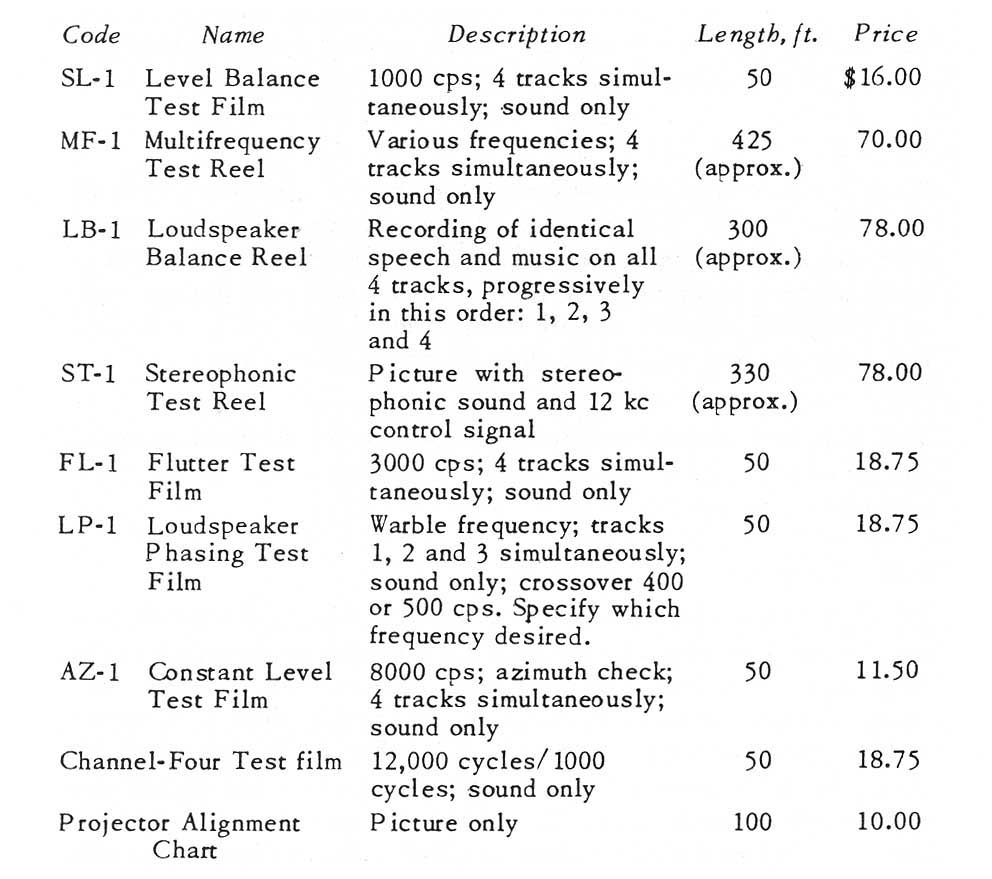 Test Film, Loudspeaker Phasing Test Film, Cons tant Level Azimuth Test Film,