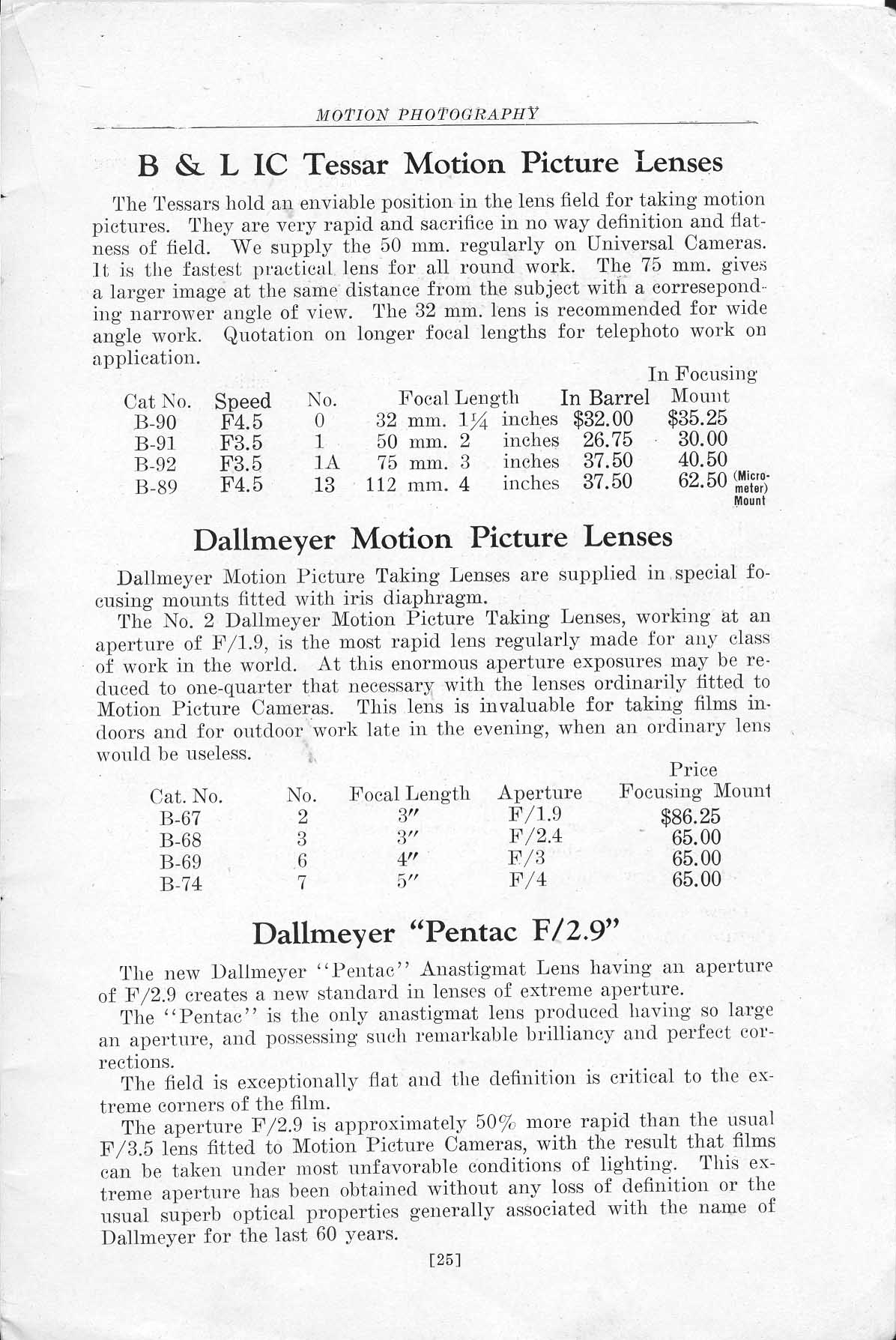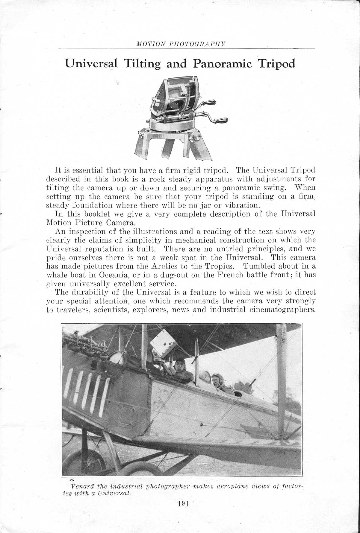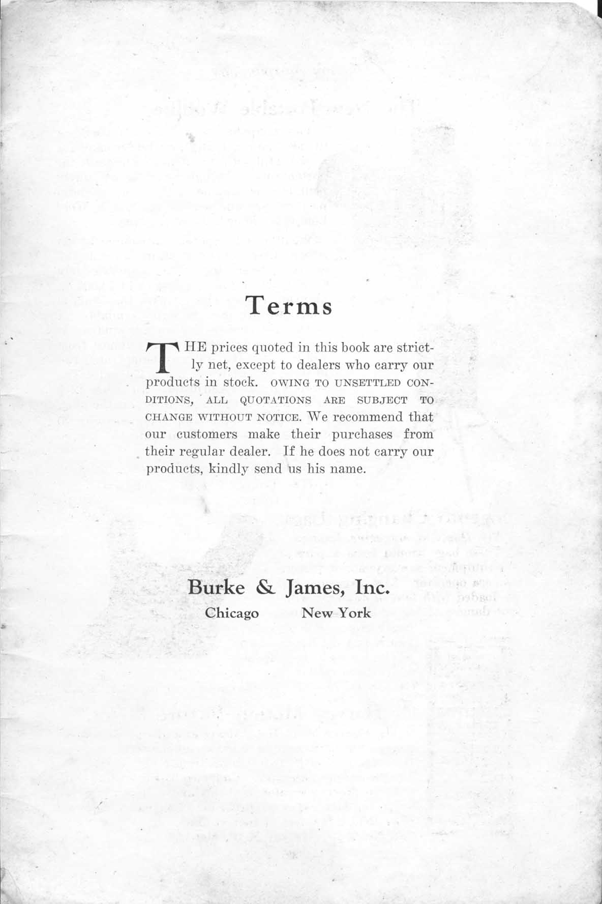 'Motion Photography with the Universal Camera' published by Burke & James Inc of 240-258 E Ontario Street Chicago. The booklet is undated. Buckey Grimm provided the following information: In the August 1921 edition of American Photography there is a short mention that states Burke and James of Chicago Ill, has just issued for distribution 2 booklets. One of which was a catalog of "Universal Camera's" entitled "Motion Photography". |