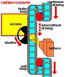 The Lumière system implemented the alternating of stop/start processes into the movement of the film, this alternation being synchronized with the movement of a revolving shutter, which shut out, all light whenever the film was not perfectly still. In this system, the images which are shown to the viewer are actually still at the time of viewing, making use of the persistence of images on the retina to put a new image into place by momentarily shutting out all light, this new image blending with the next one in the mind’s eye of the viewer.