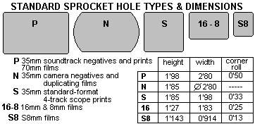 The dimensions of the four sprocket holes on each edge of a 35mm frame took many years to become standardized and, even so, this standardization has not as yet been fully achieved, two different types of sprocket holes currently being used.