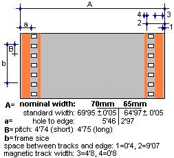 The pitch for 35mm and 70mm films is of 4.74mm (short pitch) and 4.75mm (long pitch).
