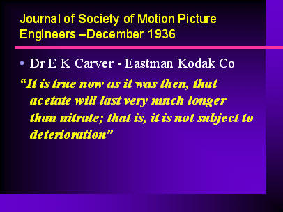 Cellulose Triacetate suffers from Vinegar Syndrome decomposition.