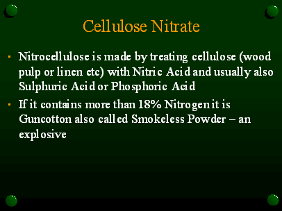 Cellulose Nitrate is HIGHLY INFLAMMABLE (see