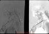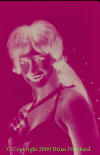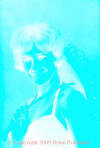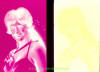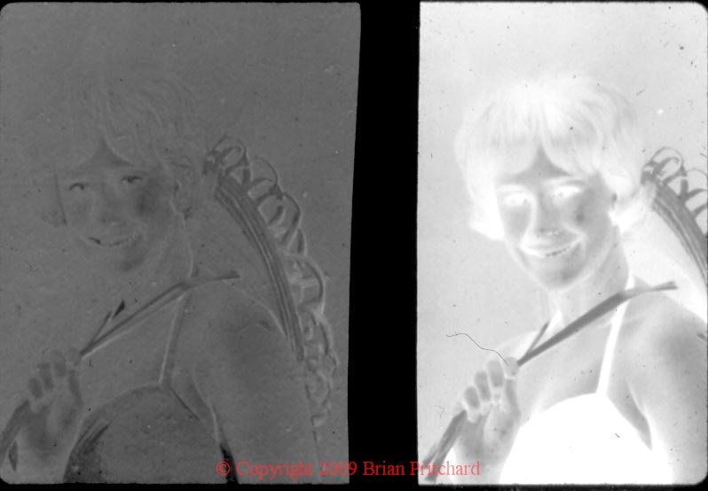 Cyan layer with and without Magenta layer with and without Magenta coloured mask yellow coloured mask Because the coupler is used to form the dye, the amount of mask will be inversely proportional to the amount of dye formed. That is, if no dye is present then maximum mask is present and in the areas of maximum dye formation there will be no mask. The illustration below shows the magenta layer and the yellow mask that is a positive image. The coloured coupler ensures that the magenta layer is only controlling the green light and the cyan layer is only controlling the red light. The control over the light is by varying the amount of dye. The more magenta dye there is the less green light that can pass, without the coloured coupler the varying amounts of dye would also vary the amount of blue light. Because the coloured coupler is yellow and the amount of coupler left increases as the amount of magenta dye decreases, the blue light transmission remains low. The magenta mask in the cyan layer reduces the amount of control the cyan dye exerts on the green light. The coloured couplers ensure that the colours in the print remain as pure as possible. If there was not a yellow mask incorporated with the magenta layer instead of pure green in the picture we would have blue mixed in with it and without the cyan mask the red would be degraded with green. The pictures below are the red, green and blue separations from the masked and unmasked magenta and cyan layers. The masked layers are on the left of each picture.