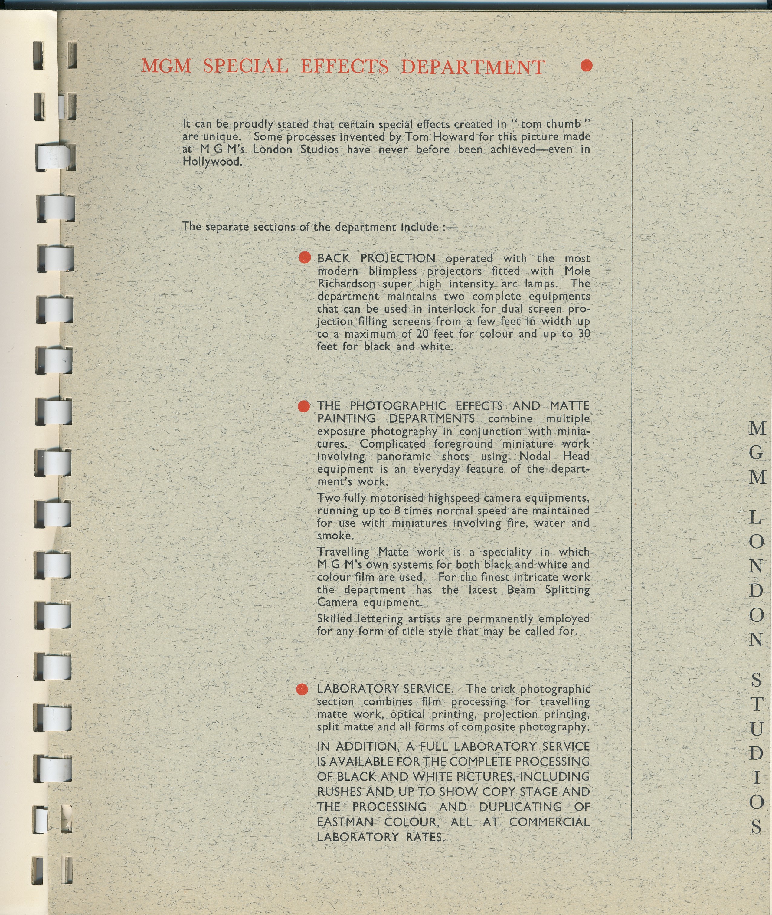 MGM London Studios  Post 1959 leaflet
