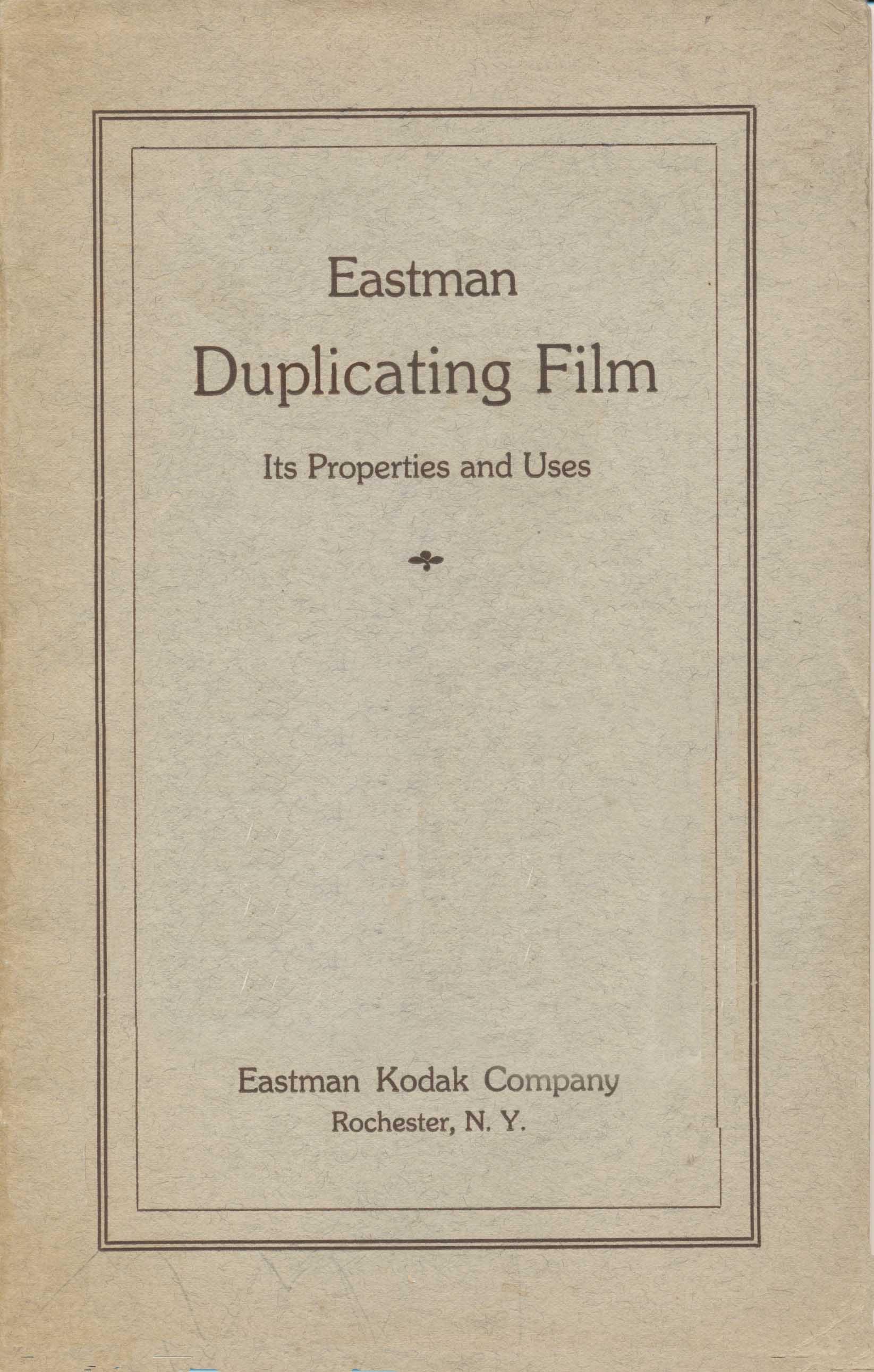 This is a booklet issued in 1927 by Eastman Kodak on the introduction of the first film specifically designed for duplicating which I believe to be Eastman Duplicating Film Type 1503 released in Dec 1926 in the UK.. The book contained some sample frames which I have done my best to match.