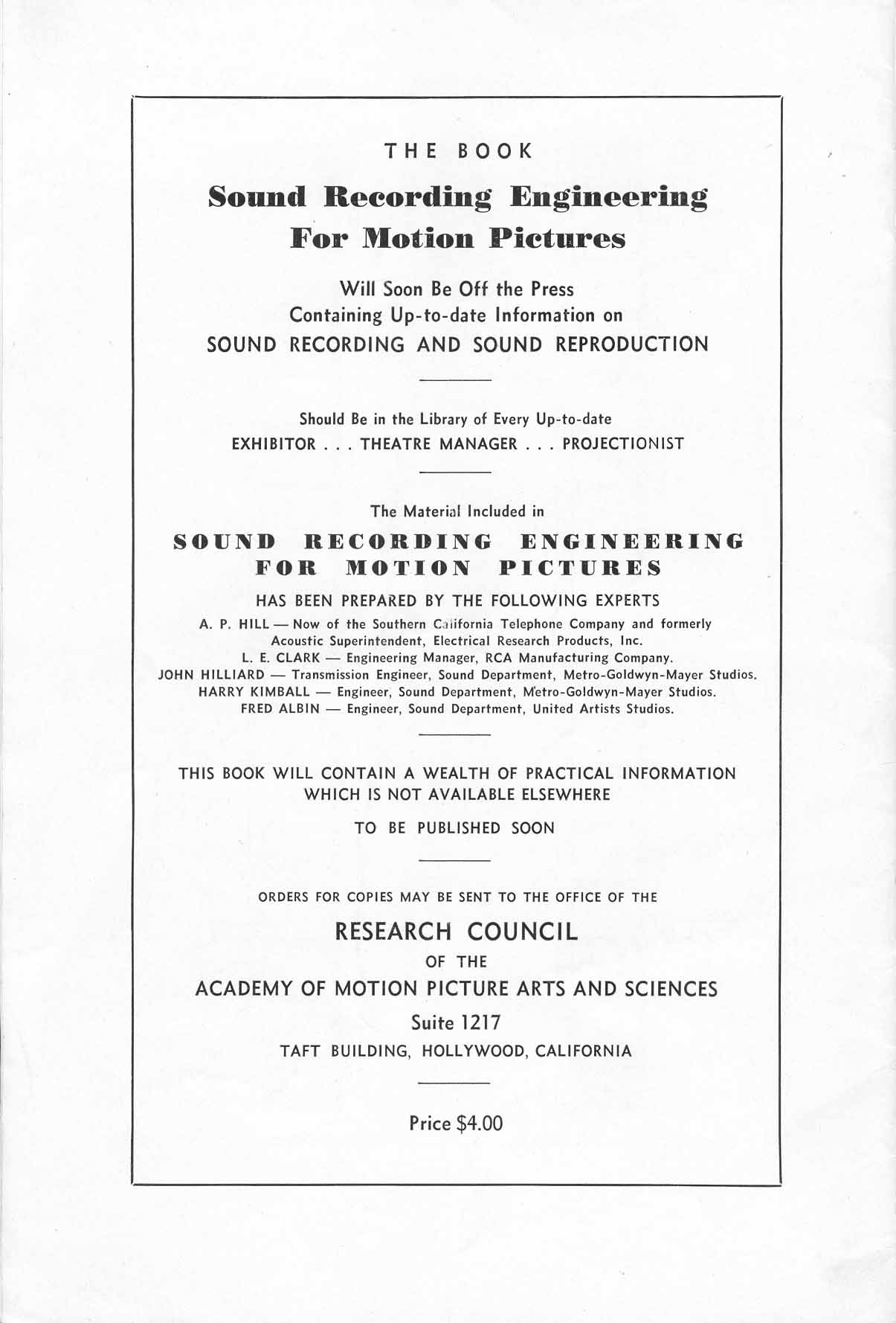 This booklet was produced by the Academy of Motion Picture Arts and Sciences Research Council.  It is not dated but it mentions two film titles, 'Maytime' and 'One Hundred Men and a Girl', both of which were made in 1937.