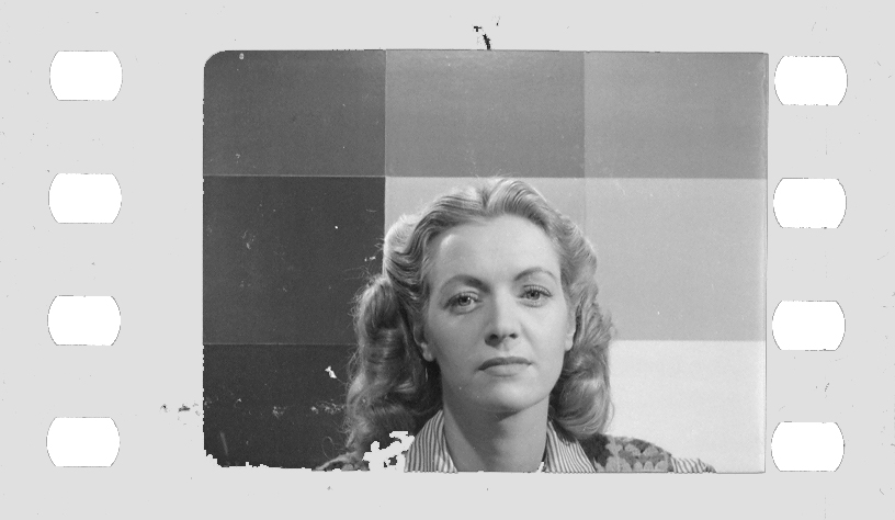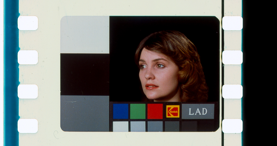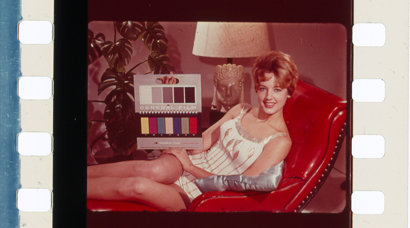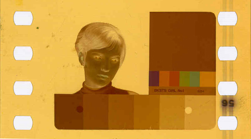 Many laboratories had their own lady tests and there was not really any universal standard, picture 6 and 14 are from Technicolor laboratories and also serves to identify cyan, magenta and yellow separations. The BKSTS produced standard negatives (Picture 8 and Picture 9, interesting because it also contained a man). The late John Pyltak of Eastman Kodak devised the Laboratory Aim Density test negative known as an LAD (Picture 13). This had calibrated white, gray and black patches and Kodak, and eventually all other manufacturers issued figures that should be achieved for these patches for all film stocks. Figures were quoted for duplicating stocks so that laboratories knew that their intermediate stocks were being printed to give optimum results. You take the Eastman Colour LAD Negative and make an interpositive from it, you then measure the density of the gray patch and calculate whether you need to increase, decrease and/or alter the colour balance to get a correct interpositive figures.