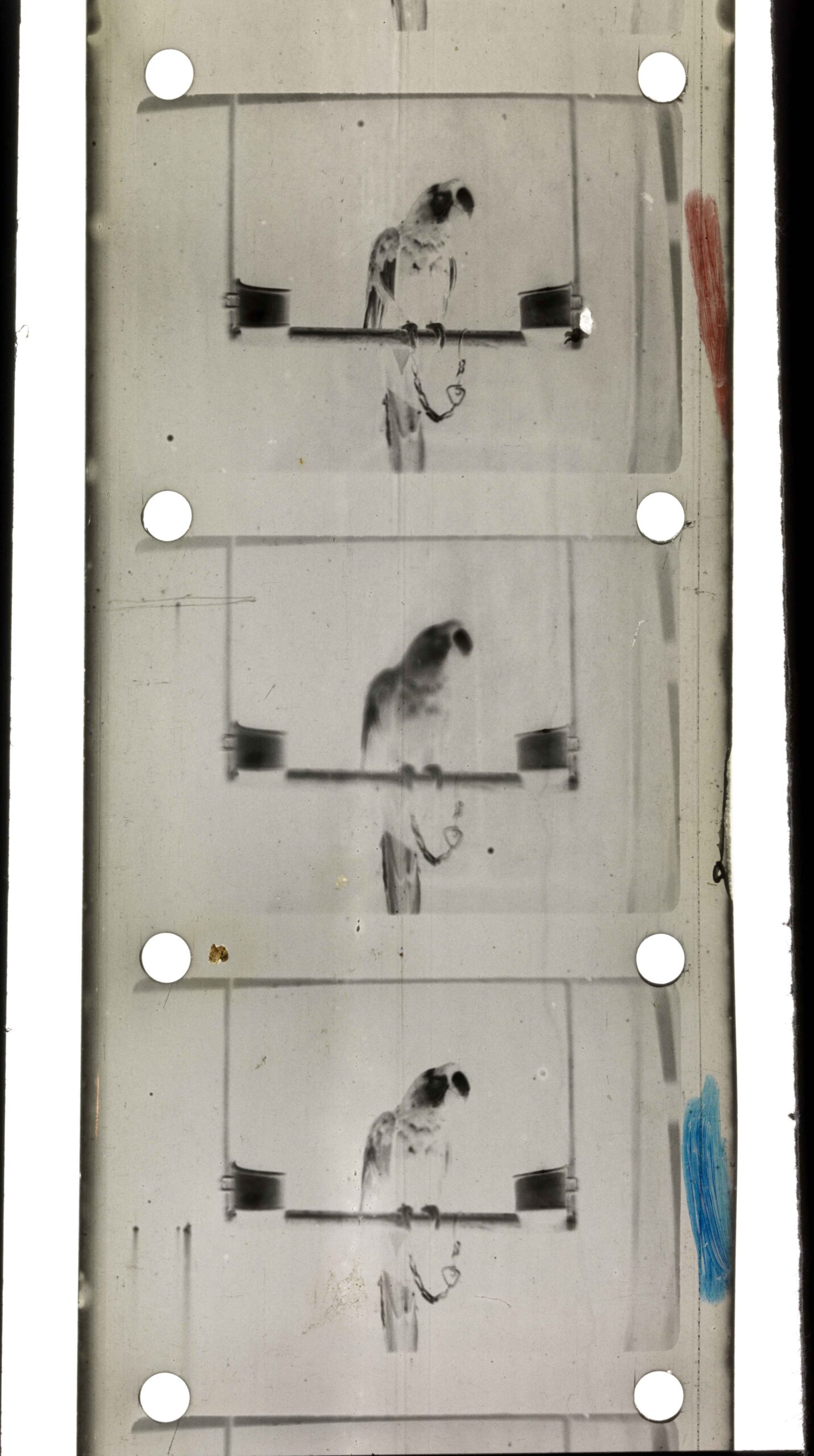 Original 1 ½ inch film with crayon marks to indicate which frame is which colour