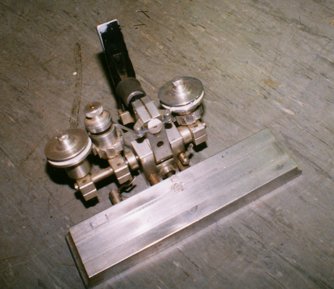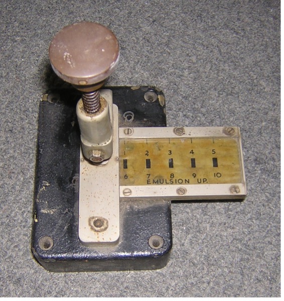 The next innervation was the Lawley clip. This was a nickel-silver staple that was attached to the edge of the film between the perforations. The clip served two purposes, there were two clips for each light change. The first clip told the reader on the printing machine when to make the change and the second clip set the value of the printer light. According to the light value the second clip appeared on either side of the film. The machine for inserting clips is at the top of the page.